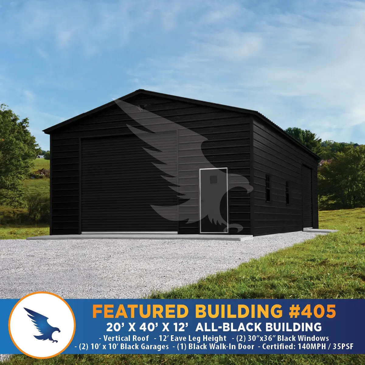 Check the latest price and customize this Metal Building using our 3D Builder at https://build.eaglecarports.com/?dealer=D0012478-MAIN#c99d42a41697781e39efda476af1720d.